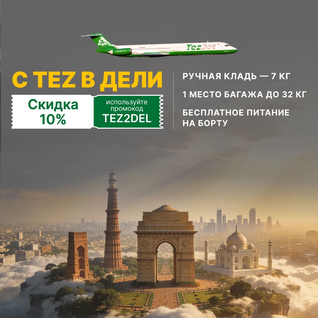 Бишкек, Кыргызстан – 1 октября 2025 года – Авиакомпания TezJet с радостью сообщает о запуске нового международного маршрута: прямые рейсы между Бишкеком, Кыргызстан (BSZ) и Дели, Индия (DEL), начиная с 7 декабря 2025 года.