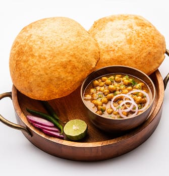 Чоле бхатуре - популярное североиндийское блюдо, состоящее из острого нута (чоле), который подается с обжаренной во фритюре лепешкой (бхатуре). Это блюдо часто подается на завтрак или обед и является основным в уличной кухне Дели.