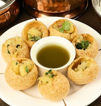 Голгаппа (также известная как пани пури) - популярная уличная закуска, состоящая из хрустящих пури, наполненных пряной тамариндовой водой, нутом и картофелем.