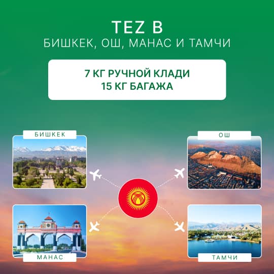 TezJet с гордостью объявляет о запуске нового прямого рейса по маршруту Бишкек – Каракол, который стартует с 23 мая 2025 года.