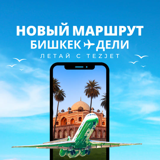 Авиакомпания TezJet объявляет о запуске прямых рейсов из Бишкека в Дели с 7 декабря 2025 года