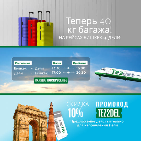 Бишкек, Кыргызстан – 1 октября 2025 года – Авиакомпания TezJet с радостью сообщает о запуске нового международного маршрута: прямые рейсы между Бишкеком, Кыргызстан (BSZ) и Дели, Индия (DEL), начиная с 7 декабря 2025 года.